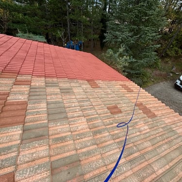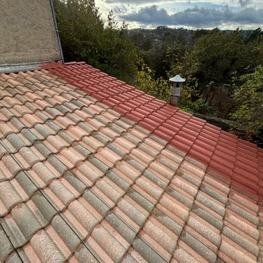 Cette étape permet d'éliminer les salissures, les poussières et les résidus accumulés sur les tuiles, redonnant à la toiture un aspect propre et soigné.